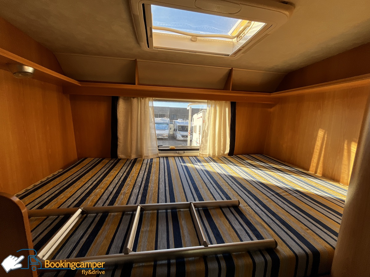 Dimensioni letto posteriore con rete a doghe 210x140 cm.